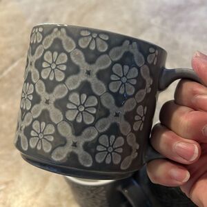 Set a for gray and black pattern mugs. Used in second home. Almost new condition. Large size holds about 2 cups. Set of 4.