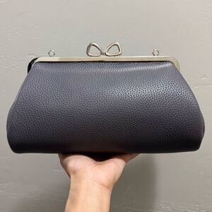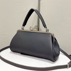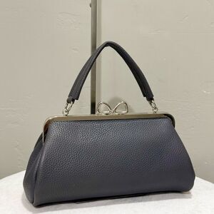 Gray Premium Cowhide Leather Handmade Bow Shaped Kisslock Baguette Bag/Crossbody