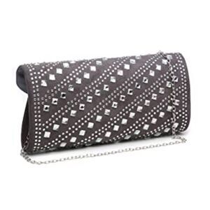 Gray Velvet Studded Clutch / Shoulder Bag