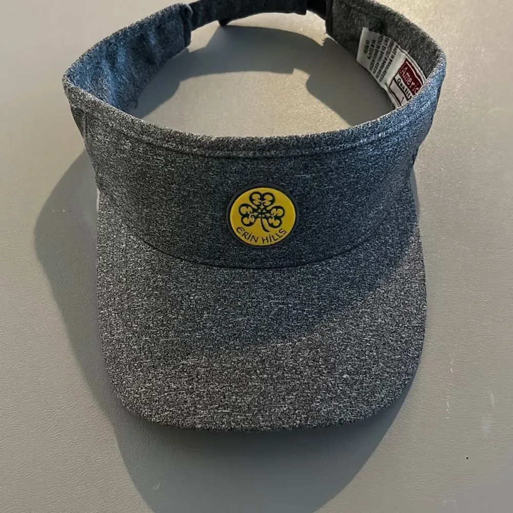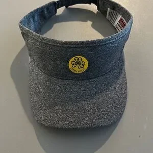Gray visor. Back Velcro adjustable tab. Has Erin Hills golf club emblem on front.