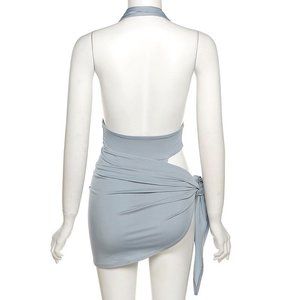 Gray-blue Two-piece Swimsuit With Snap Button To Wear Outside Swimsuit