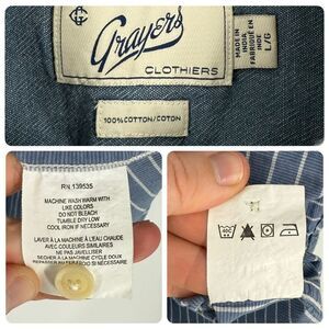 Keywords: Grayers shirt men’s, Grayers Clothiers button down, cotton striped shirt, summer casual shirt, men’s size L top, short sleeve collared shirt, Grayers cotton shirt
