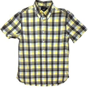 Grayers Gray Yellow Check Button Collar Short Sleeve Shirt