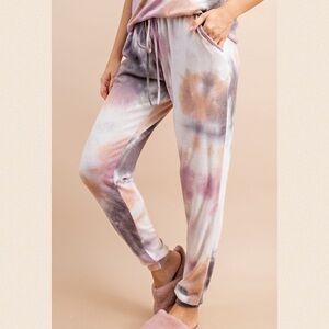 Gray/mauve Tie Dye Brushed Lounge Pants