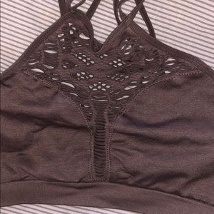 Worn once! In great condition and a beautiful slate/purple color. Fun straps and detailing on the chest.