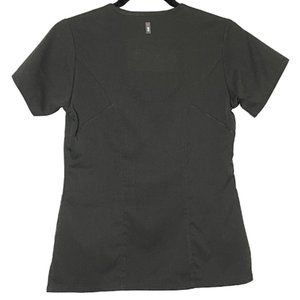 Gray's Anatomy Spandex Stretch Black Scrubs Top - V-neck, 3 pockets, 1 is zippered, 3" slit on each side at hip, short sleeve, spandex stretch. Pre-owned, excellent condition.
