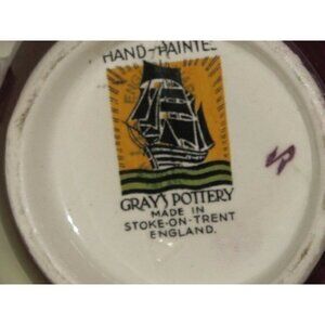 Gray's Pottery Copper Lusterware Creamer Leaves Pink Flower 3.5" 8oz.
