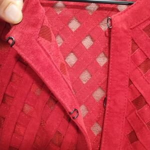 Grayse Red Suede Mesh Woven Leather Jacket Crop-Large