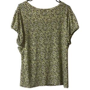 Grayson top in a green/ yellow pattern. Sleeves have elastic at the end. EUC. No callouts.