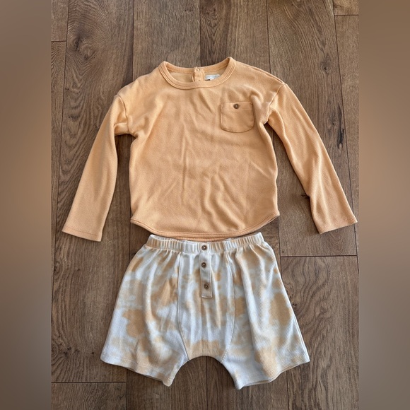 20% off 3+ bundle! Stylish long sleeve top with a front pocket. Paired with matching tie-dye shorts. Perfect for casual wear. Toddler, play, playtime, comfy, comfortable, lightweight, breathable, comfort, long sleeve, elastic waist, tie dye, casual.