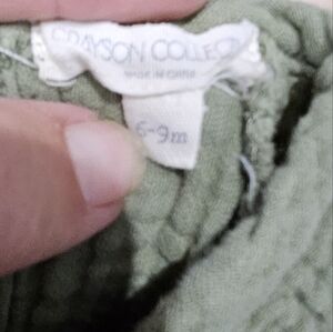 Grayson Collective Olive Green Textured Kids 100% Cotton Jumpsuit Sz 6-9 Months
