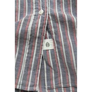 Tags: Grayson, womens, size small, size 2, gray, striped, red, blue, classic, preppy, long sleeve, Button Up, work, office, business casual, collared