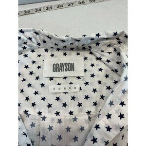 Grayson Frank & Eileen White Blue stars button down shirt size 4 LG "the Hero"