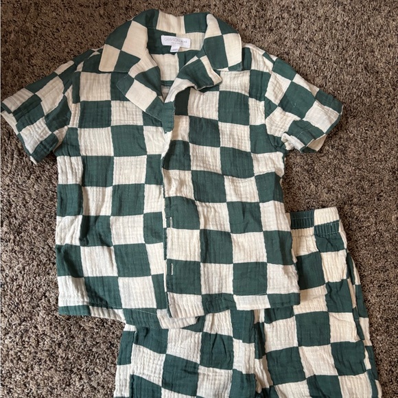 Cozy and stylish kids set featuring a green and white checkered pattern. Perfect for a comfortable playground days.