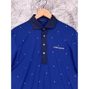 Grayson Polo Shirt Medium Mens Blue Wolf Print Short Sleeve Performance Golf