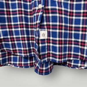 Grayson Shirt Blue Red Hero Plaid Feathered Cotton Flannel Button Down Size