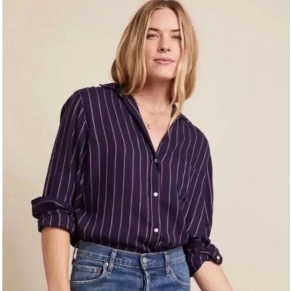 Grayson The Hero Button Down Shirt Navy Blue Red & White Stripes -Size Small / 1
