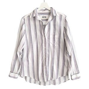 Grayson The Hero Shirt Womens 02 Small Blue Stripe Button Up Cotton Blouse