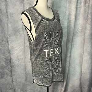 Grayson/Threads Austin Texas gray burnout sleeveless tank top. Exposed seams and side slits. A super soft sweatshirt like material (cotton/poly blend). Size large. In very good preowned condition! Measurements taken when tank is lying flat and are approximate.