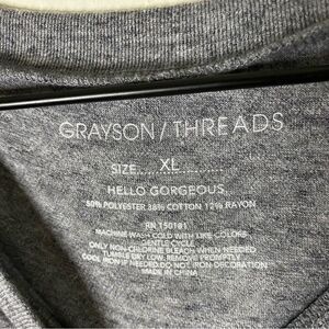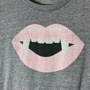 Short sleeve gray tee from Grayson Threads. Pink lips with vampire fangs graphic. Size XL (Juniors sizing). Good preowned condition with no tears or stains.