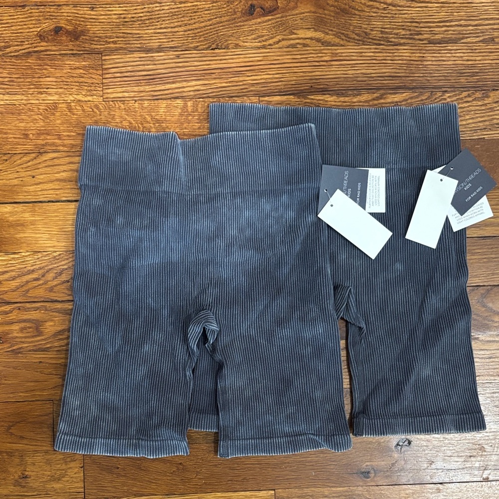 Stylish ribbed biker shorts in a versatile gray color. Perfect for casual wear.