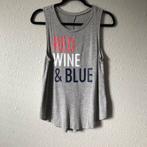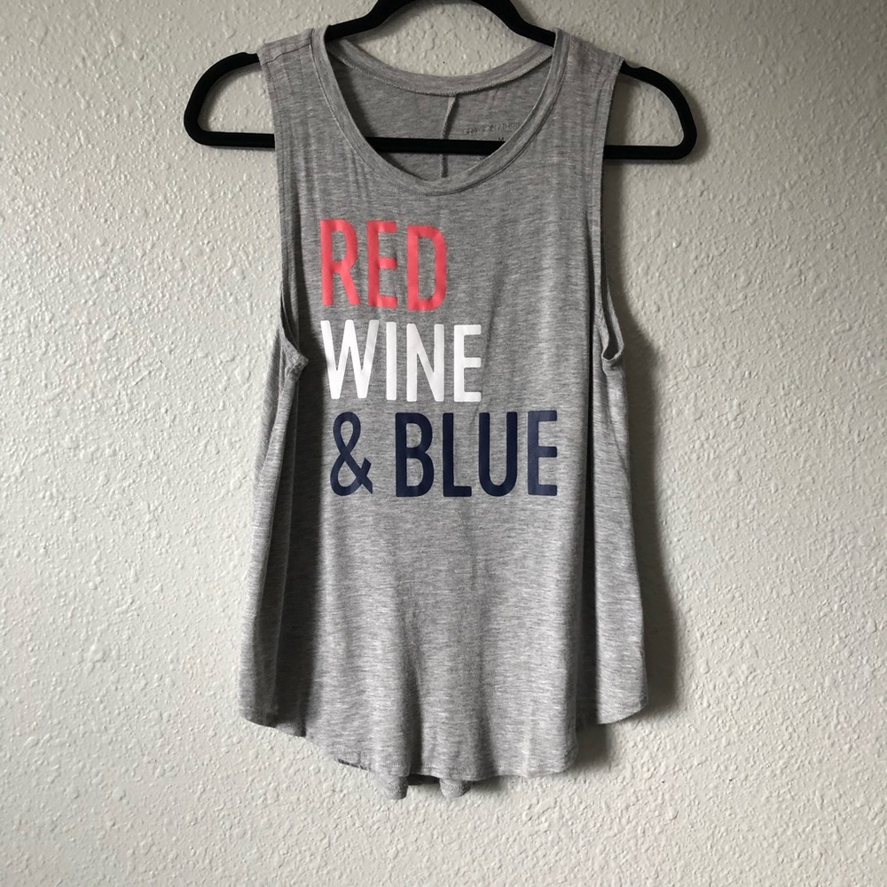 Grayson Threads ‘Red Wine and Blue’ jersey tank. Size medium. Measurements are approximately 17 inches across the chest and 24 inches from shoulder to hem. No signs of wear.