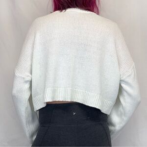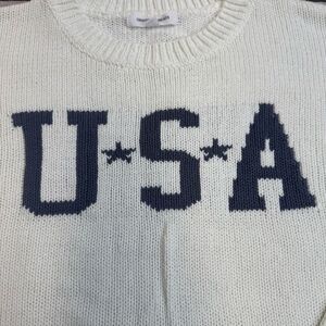 Grayson Threads Women's Pullover Cropped USA Sweater Ivory Blue XL Extra Large