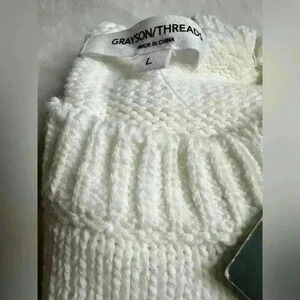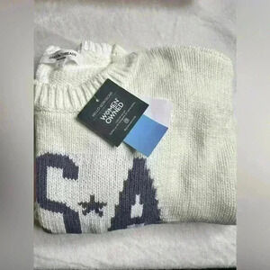 Grayson Threads Women's Size Large Long Sleeve Flag Graphic Sweater Off White