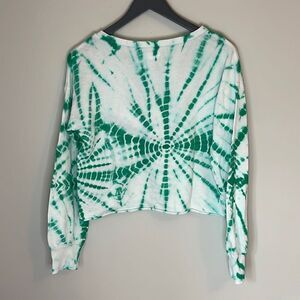 Grayson Threads Women's Green Tie Dye Long Sleeve Crop Top Shirt Size Small