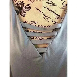 Grayson Womens 1X Blue Knit Ladder Front V-Neck Blouse S/S