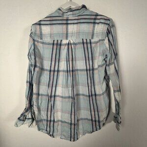 Grayson Womens Plaid Long Sleeve Button-Down The Hero Shirt Size 3 Linen Blue