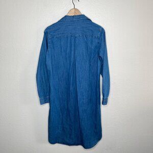 Excellent preloved condition Grayson by Frank and Eileen Womens Cotton Chambray Midi Blue Button Front Shirt Dress XS (01)