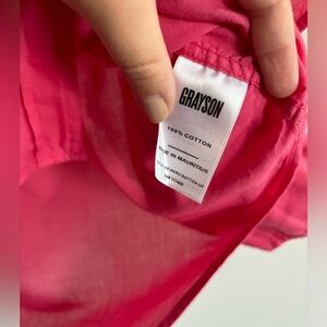 Great conditions Grayson button up top. No stains, rips or bad odor. Color pink. Long sleeve. Light weight. Is a bit sheer. High and low. Great to pair with jeans. 100% Cotton. Super soft and comfortable. Please see pictures for more details.