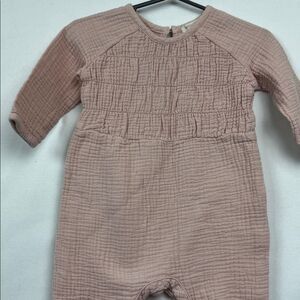 Grayson Collective Dusty rose pink cotton waffle smocked muslin jumpsuit 3-6 min