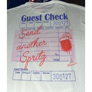 NWT Grayson/Threads "Send Another Spritz" Graphic T-Shirt. New with tags, size medium. This fun graphic tee features a guest check design with a cocktail and the phrase "Send another Spritz." It is a great piece for a casual, trendy, or party look. The original price is $16.99.
