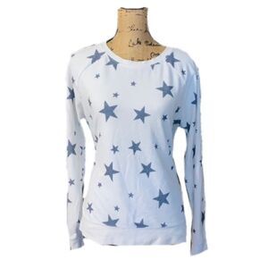 A great comfy shirt. White with blue stars. Polyester/rayon/spandex. In good condition