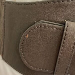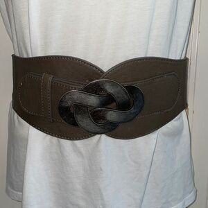 Gray/taupe wide elastic & polyurethane belt with pewter silver buckle