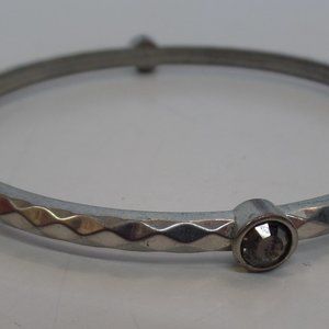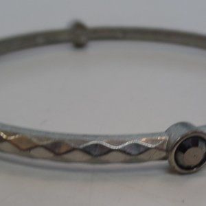 Graziano (Stamped) Silvertone Bangle Bracelet 7" Wrist or Smaller 4 Stations of stones. Do not think it is silver. It could be stainless steel. But it sure is pretty. And I do not know what the stones are in the four stations. They could be glass. But I know its a good brand and super attractive. Please view the pictures carefully for details, colors, measurements, brand and condition as they are part of the item description. Sometimes I use flash to capture details as well. This will come carefully packaged for shipping. Comes from a smoke free, animal free environment. Please check out our other items. We specialize in Beautiful Jewelry, Purses, Shoes & Home Decor. 1000 + Listings. And if you find several items you like, Message me so I can give you a better rate on shipping. Questions? Ask us. No problem.