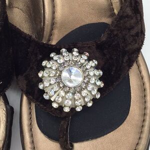 Grazie Women’s Sandals Brown Crushed Velvet Wedge Rhinestone Embellished Size 10