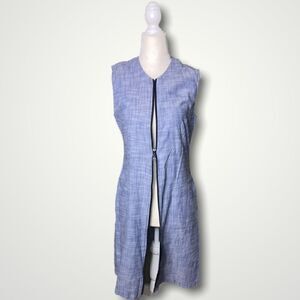 Gr.dano, Boutique Chambray Contrast Full Front Zipper Dress Sleeveless, Pockets