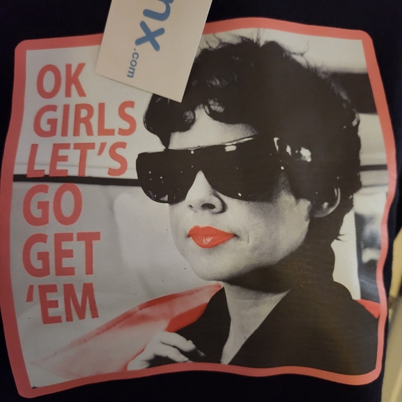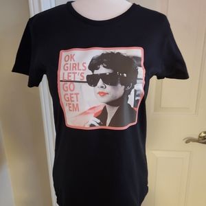 Grease the movie, Rizzo, Okay Girls, Let's Go Get em womens t-shirt. Available in several colors, shown here on black in womens medium.