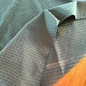 Great 117-1/2 x 57-1/2 Inch Forest Green Tablecloth. It was hard to get a picture showing that this is a true dark green, as there was a lot of sun glare. The top side is in perfect condition with no stains, tears or fading. The bottom side does have a little fading from being folded and having slight sun exposure. Fabric is unknown but appears to be polyester or a polyester bend. If you sew, this could easily be cut down with the end pieces used for matching napkins.