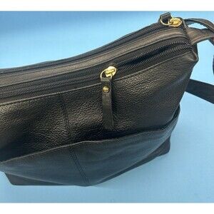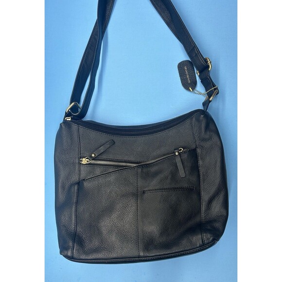 GREAT AMERICAN Leather Works Womens Black Leather Crossbody Shoulder Purse