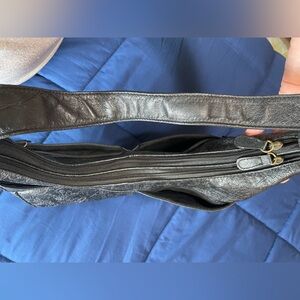 Great American Leather Works Black Purse/Hobo/Bag Imprinted Floral Pattern