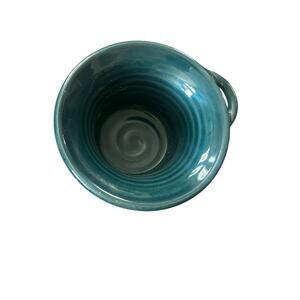 Vintage Great Bay Pottery Bowl with one handle green and grey with snowman pattern planter with green interior