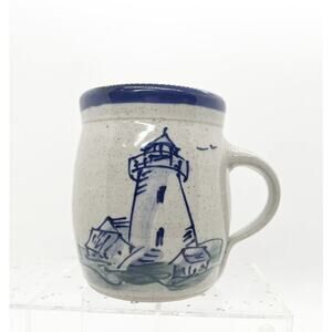 Great Bay Pottery Lighthouse Coffee Mug Blue Interior Handmade USA Signed