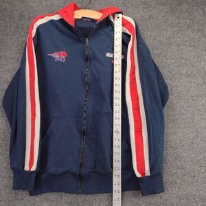 Great Britain Full Zip Hoodie Womens Size XL Blue Red Striped Embroidered Logo