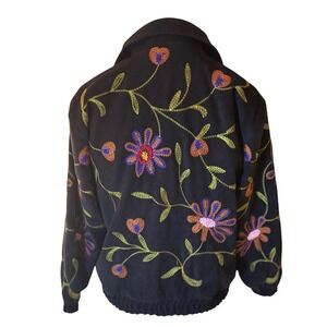 Great Cavalier Embroidered Floral Jacket Black Small Petite Zip Up Coat