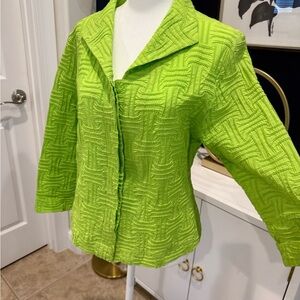 Brighten your wardrobe with this Great Cavalier vibrant lime green lightweight textured jacket/top. Perfect for any occasion, this stylish piece adds a pop of color to your outfit. Excellent condition, size medium.