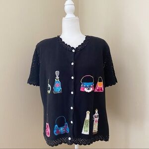 Vintage Great Cavalier Short Sleeve Perfume and Purse Sweater